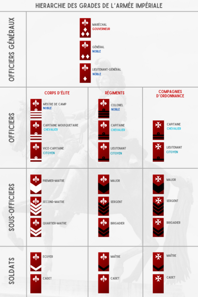 [[Fichier:Grades ArmeImperiale.png| | [[Fichier:Grades ArmeImperiale.png|400px|vignette|droite|Grades militaires dans les armées impériales]] | ||