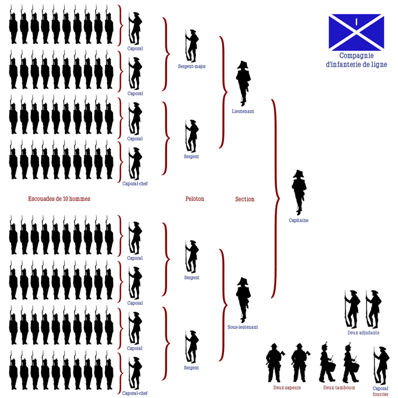 Ils occupent alors le rang de chef de section, et commandent des unités de 50 hommes. Il y a un sous-lieutenant par compagnie, qui commande la 2e section.